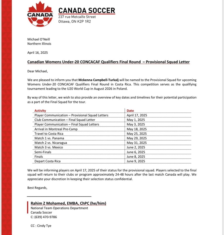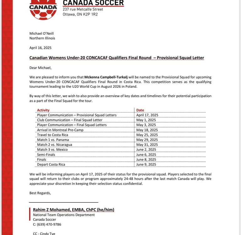 Canada Women's Under-20 CONCACAF Provisional Squad - 2025
